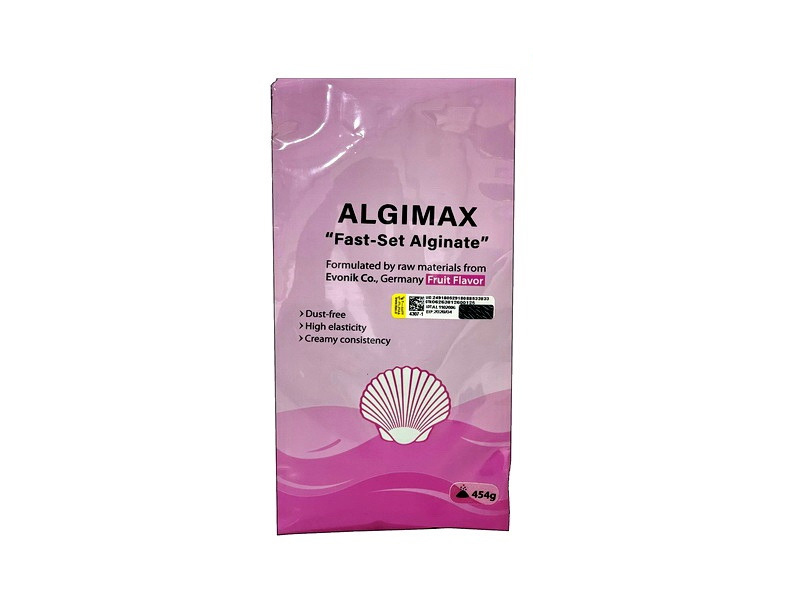 آلژینات تک رنگ ALGIMAX Fast Set : ویژگی ها و مزایا: جذب سریع آب سهولت استفاده و آماده سازی دوام طولانی مدت عاری از هرگونه آلودگی دارای رایحه نعنا دارای حالت ژلاتینی عدم چسبندگی به دست و لثه ماده قالب گیری دارای تک رنگ صورتی می باشد. دارای 3 سال تاریخ انقضا راهنمای استفاده و آماده سازی از ALGIMAX Fast Set: 30 ثانیه Working time ۶۰ ثانیه load tray time 60 ثانیه Setting time