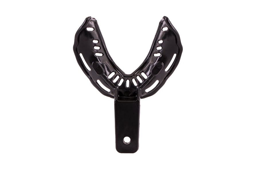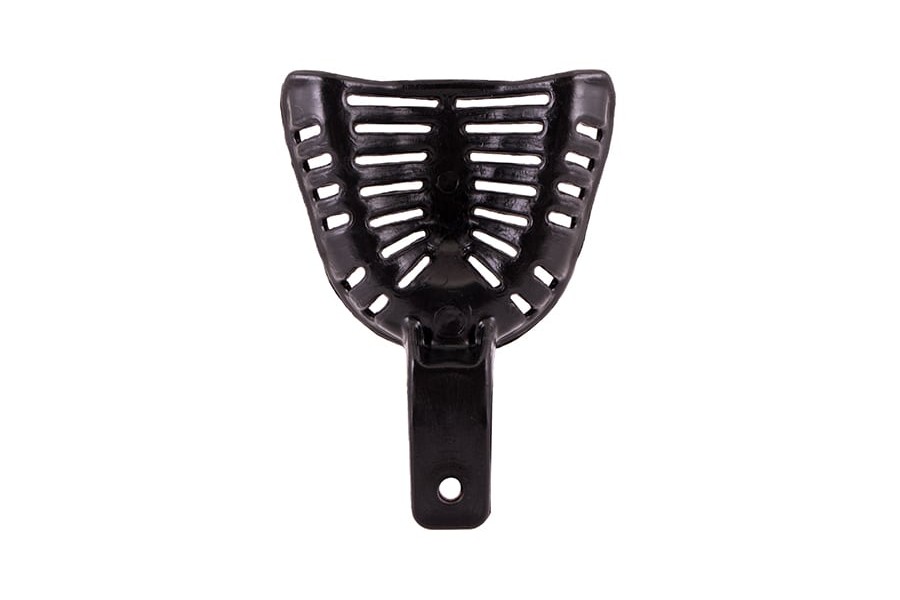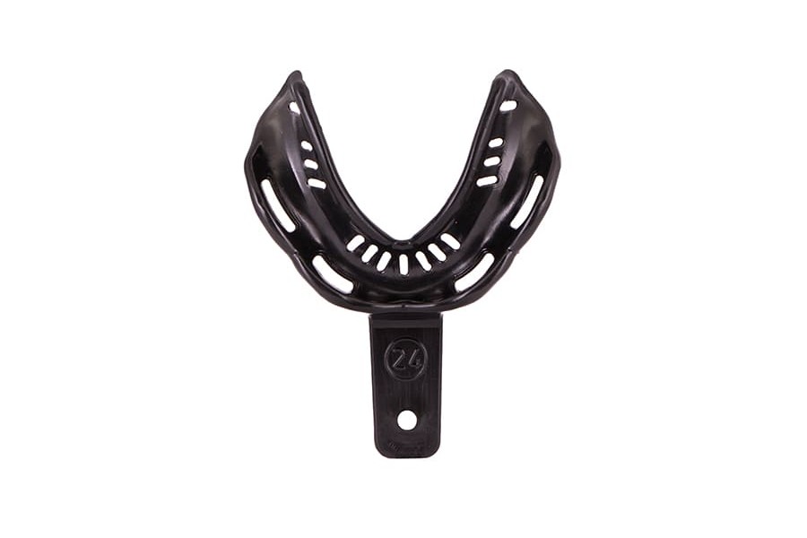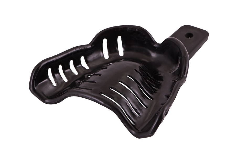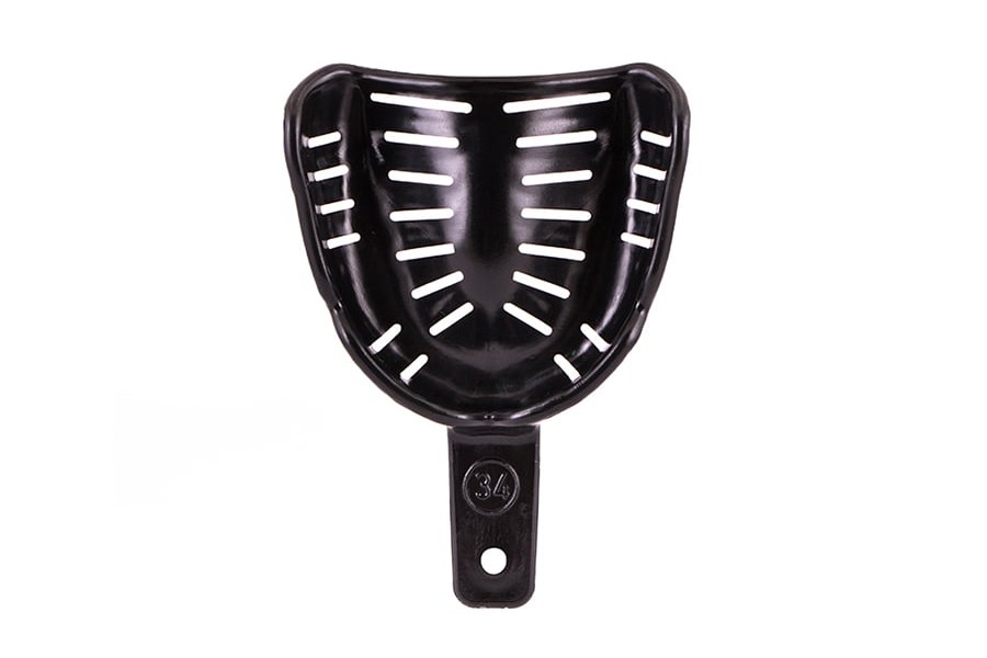- دارای شیارها و حفرههای متعدد در داخل تری برای قفل شدن بهتر مواد قالبگیری (مانند آلژینات، سیلیکون و غیره) و جلوگیری از جابجایی آن و در نتیجه افزایش دقت قالبگیری